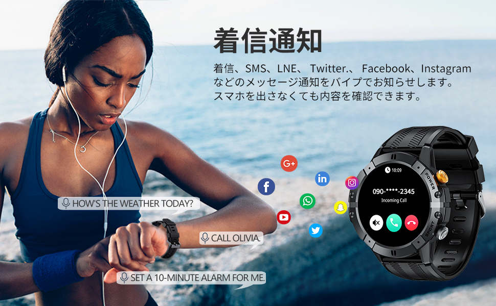 【Bluetooth5.3通話機能付き&着信通知】最新世代のBluetooth5.3を採用して、Bluetooth5.0より通信範囲・接続の安定性が飛躍的に向上しました。専用アプリ【Da Fit】と接続するとスマートウォッチで、着信やメッセージの受信、LINE、Twitter、Facebook、メール、Instagramなどのアプリからの通知を表示し、内容も確認できます。音声アシスタントも付き、スマホのSiriを呼び出すことは可能です。※ご注意:Bluetooth通話&メッセージ通知と音楽再生機能を利用するとオーディオ bluetoothとペアリング接続が必要です。
