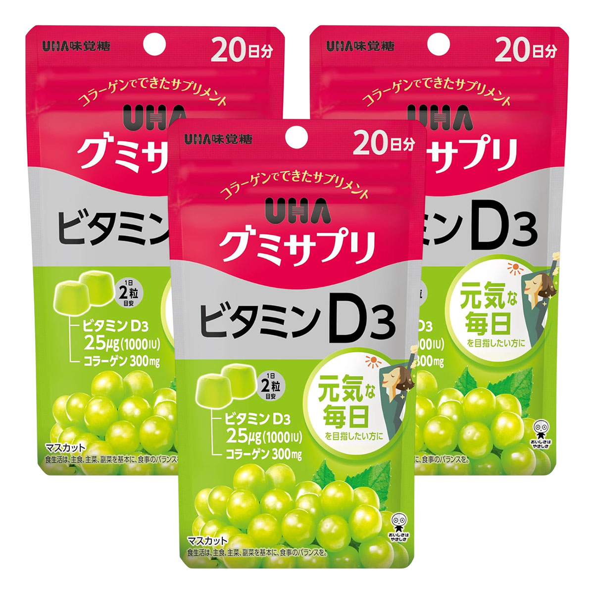 UHA味覚糖 グミサプリ ビタミンD3 20日分 40粒×3個セット メール便送料無料