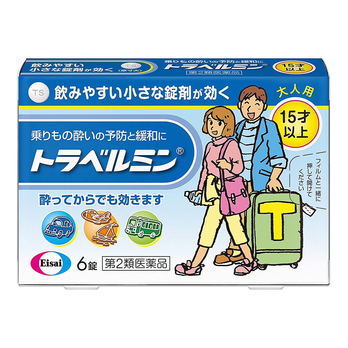 トラベルミンは、乗りもの酔い症状の予防及び緩和に有効な、大人用の乗りもの酔い薬です。酔う心配がある場合、乗る30分前の服用により、乗りもの酔い症状が予防できます。また、酔ってしまった時でも、服用によって乗りもの酔い症状である「めまい」「吐き気」「頭痛」を改善し、旅行を楽しむことができます。