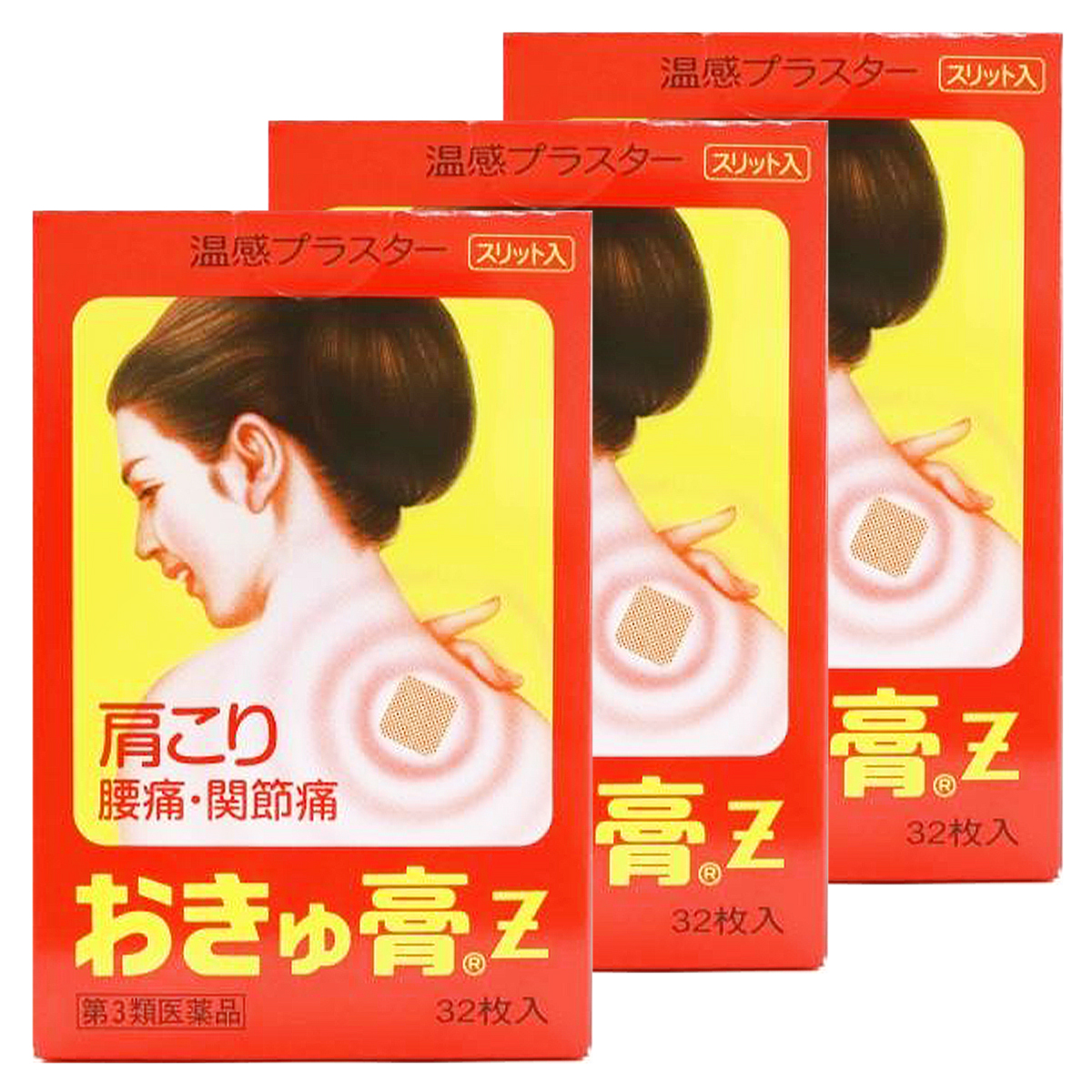おきゅ膏は、お灸と同じようにツボに貼る鎮痛温感プラスターです。グリチルレチン酸を配合し、皮膚の刺激を抑えます。