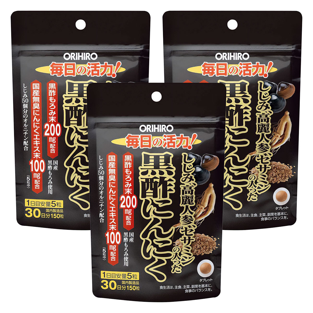 オリヒロ しじみ高麗人参セサミンの入った黒酢にんにく 150粒×3個セット メール便送料無料