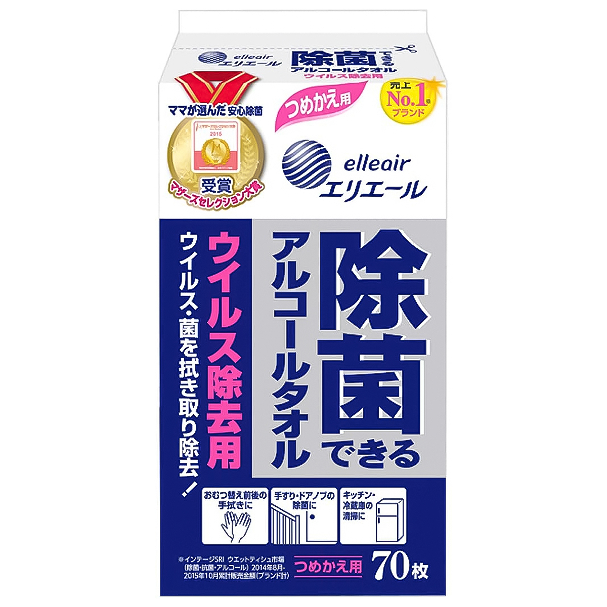 エリエール 除菌できるアルコールタオル ウイルス除去用 つめかえ用(70枚入)