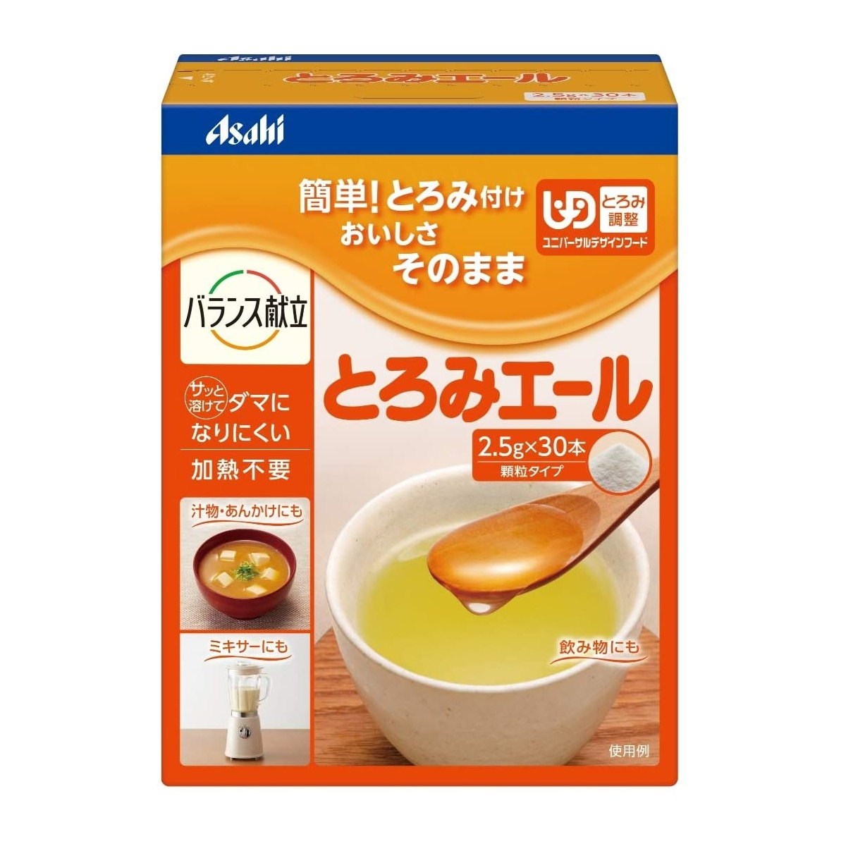 特徴:●飲み物・汁物でムセやすくなった方に! ! ●食品に加えるだけで、適度なとろみがつけられます。●溶解性に優れ、食品本来の風味を損ないませんので、手軽に様々な食品にお使いいただけます。 ●便利な分包タイプ。●飲み物などにすばやくとろみをつけるとろみ調整食品です。 手軽に様々な食品にお使いいただけます 原材料名:デキストリン、増粘多糖類栄養成分: 2.5g当たりエネルギー 9kcalたんぱく質 0g脂質 0g 炭水化物 2.3gナトリウム 5〜15mgカルシウム 7mg内容量:2.5g×30本入