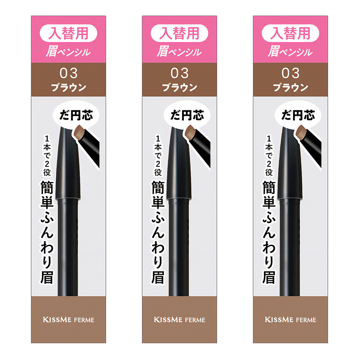 キスミーフェルム カートリッジWアイブロウ 入替用ペンシル 03 ブラウン×3個セット メール便送料無料