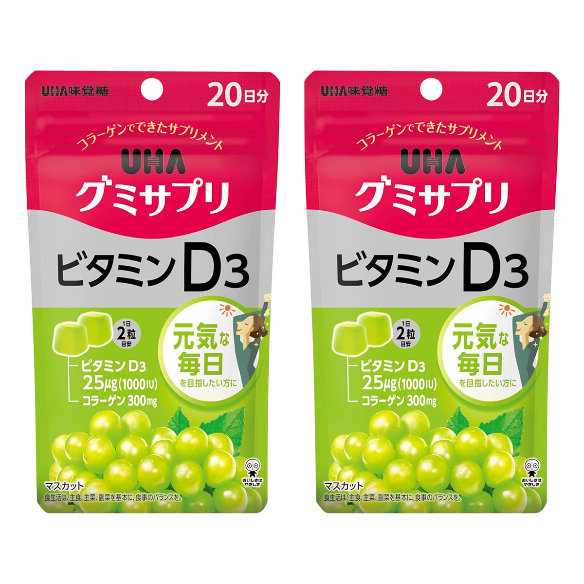 UHA味覚糖 グミサプリ ビタミンD3 20日分 40粒×2個セット メール便送料無料