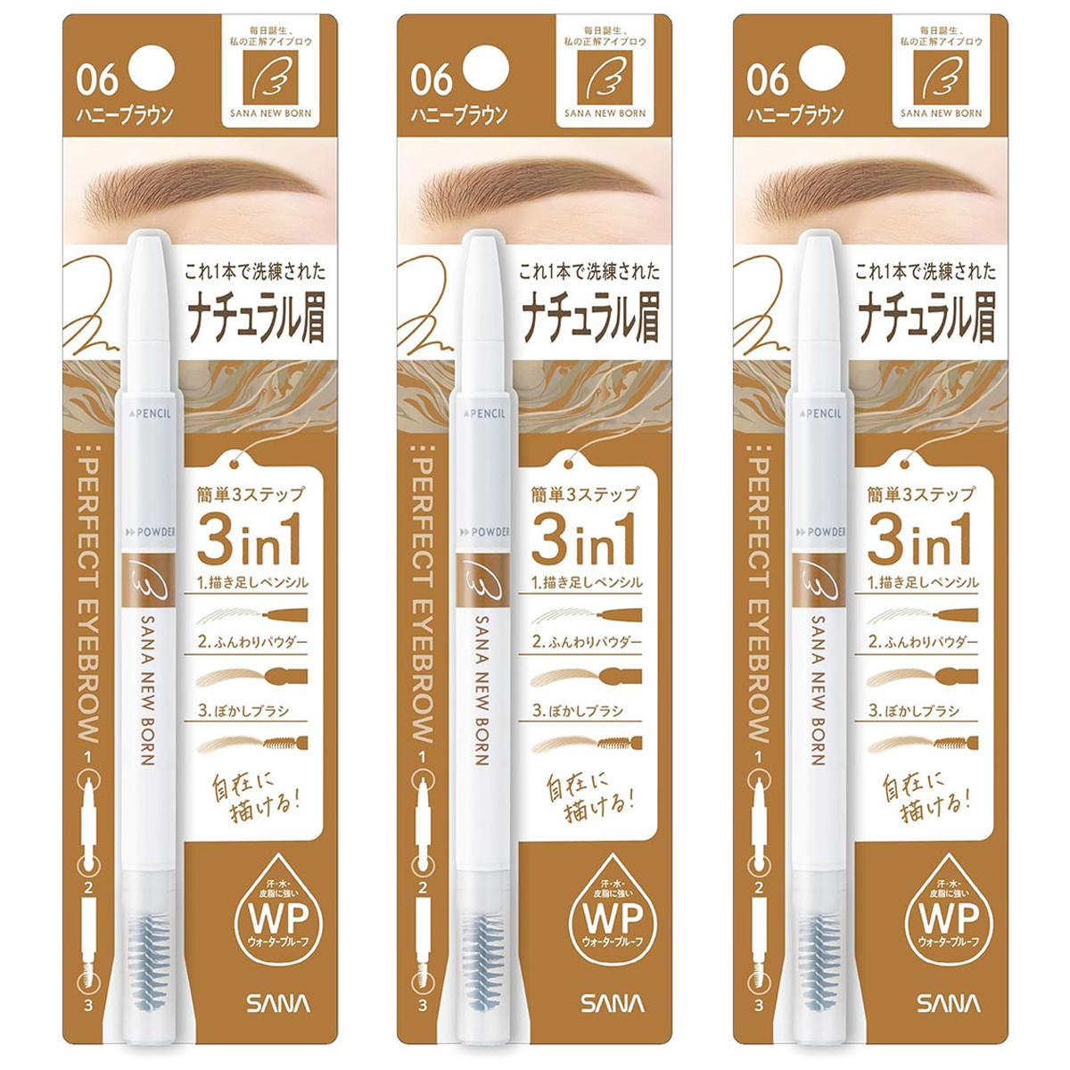 サナ ニューボーン パーフェクトアイブロウ 06 ハニーブラウン 0.4g×3個セット メール便送料無料