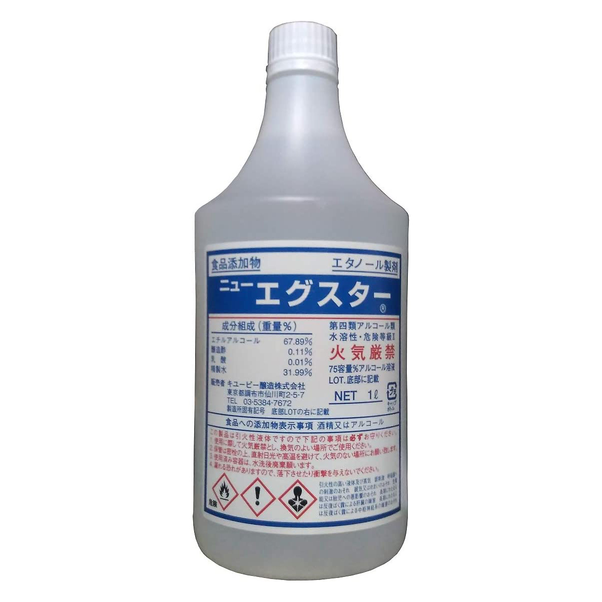 エチルアルコール67.89%、醸造酢0.11%、乳酸0.01%、精製水31.99%