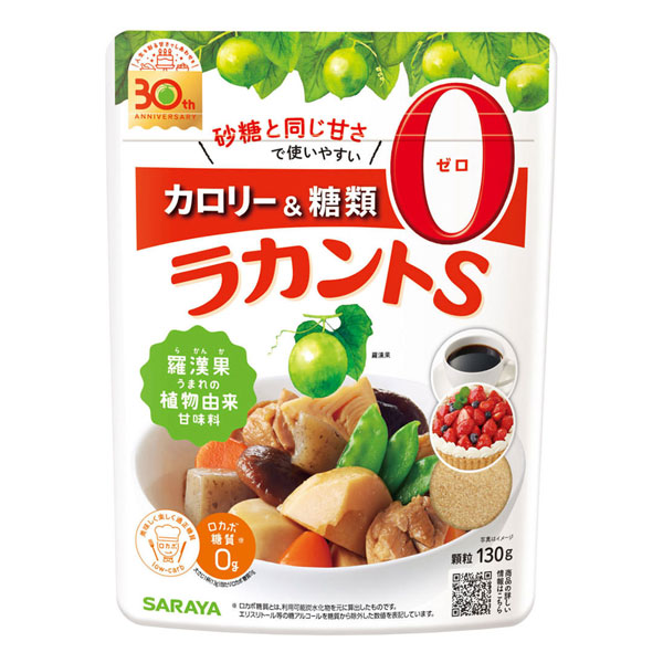 ・羅漢果(らかんか)の生果実からわずか1%ほどしか取れない砂糖の約300倍の甘さをもつ高純度ラカンカエキス(ラカンカ抽出物)を、とうもろこし由来の「エリスリトール」と合わせた、カロリーゼロ・糖類ゼロの甘味料です。