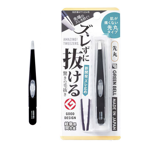 グリーンベル ズレずに抜ける驚きの毛抜き 先丸 ブラック GT-234