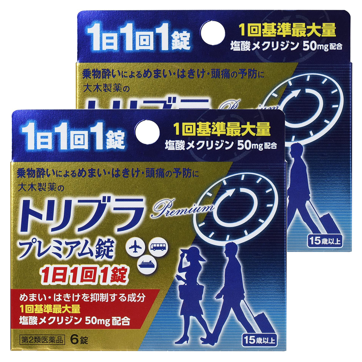 ●めまい・吐き気を抑える有効成分の塩酸メクリジンを1回基準最大量50mgを配合。吐き気抑制のスコポラミンも1回最大量配合。眠気・部痛を抑えるカフェインと神経機能を清浄に保つビタミンB6を配合したプレミアム処方の酔い止め薬です。