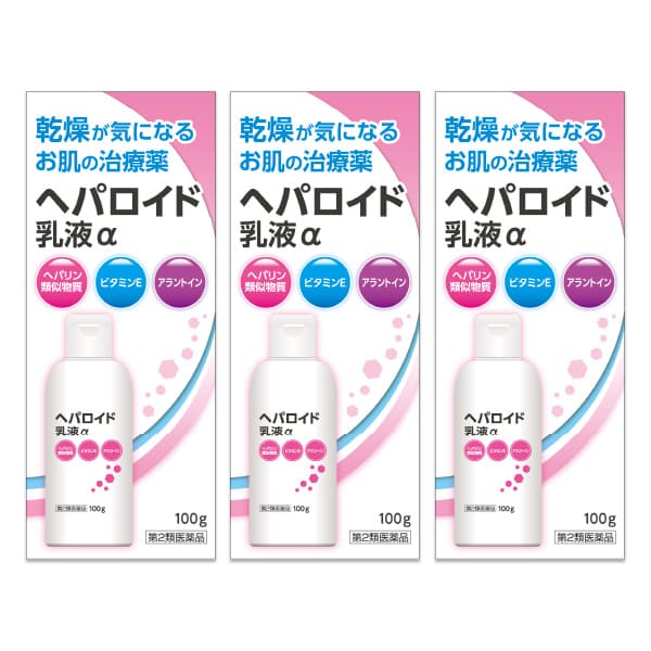 乾燥肌・肌荒れにお悩みの方のために開発した医薬品です。医療用医薬品でも使用されているヘパリン類似物質を0.3%配合しています。