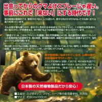 TV・新聞・雑誌で大反響を呼び、各メディアで実証・絶賛されたイノシシ用忌避剤『亥旦停止』をベースに、十数年かけて徹底改良。熊専用に特化して開発されたのが『撃退クマ』シリーズです。