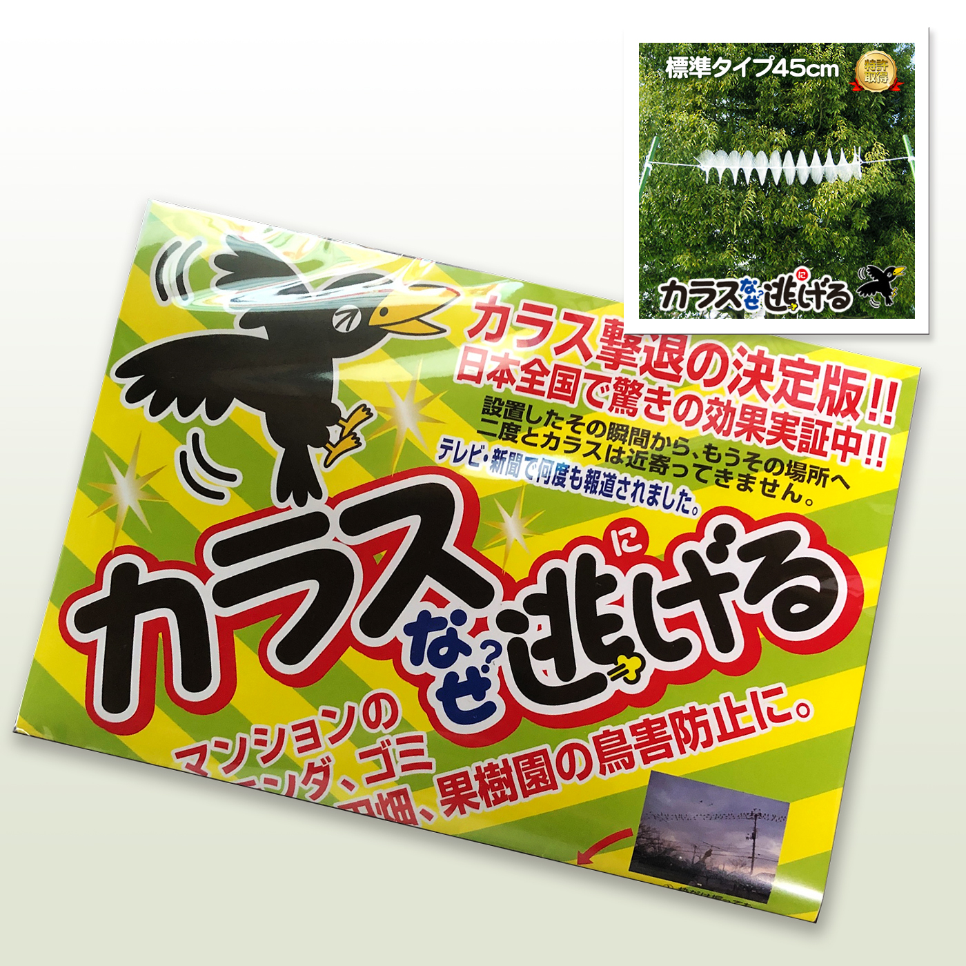 カラスの生理を研究し尽くして編み出された、全く新しいタイプのカラス撃退用具です。今や日本各地から、驚きと絶賛の声が寄せられています。