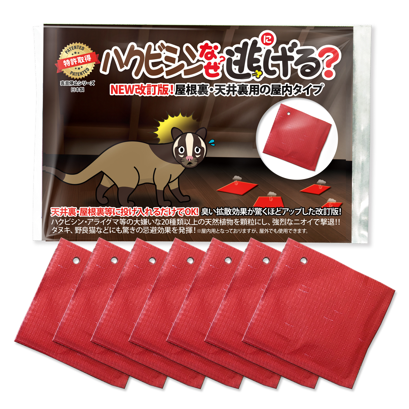 ハクビシンなぜ逃げるニュー改訂版 屋根裏・天井裏用の屋内タイプ7枚セット ハクビシン 撃退 グッズ ハクビシン 忌避剤 ポイント利用