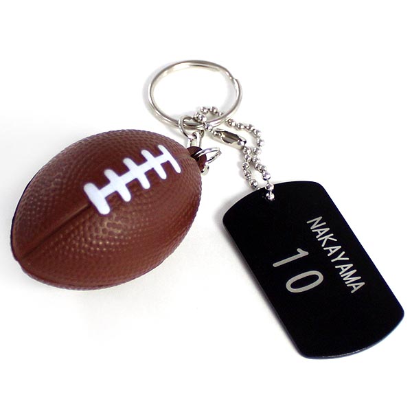卒団記念品 ラグビーボール キーホルダー PU ボール 名入れ タグ付き ネームタグ 名札 プレート アルミ札 高校 記念品