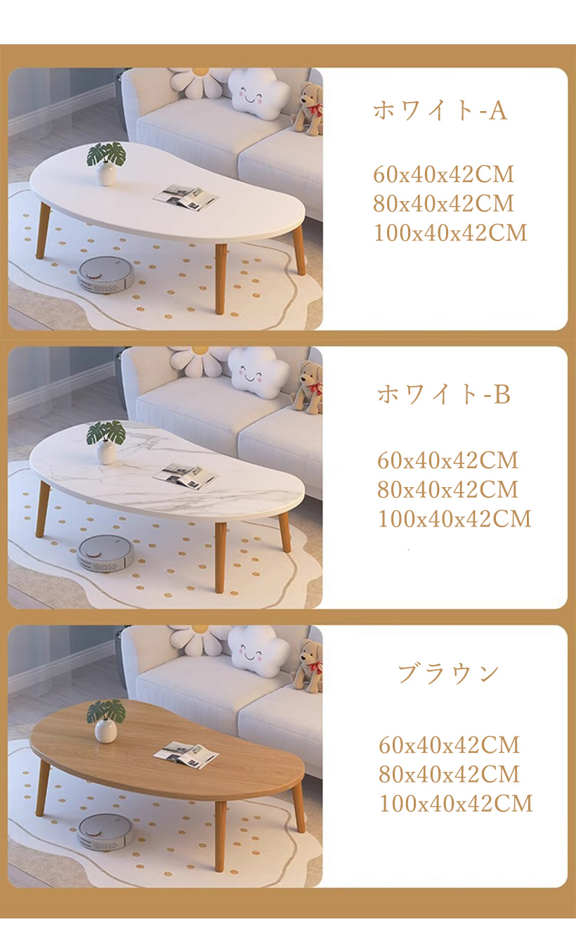 テーブル おしゃれ 北欧 大きめ センターテーブル リビングテーブル 座卓 コーヒーテーブル シンプル 白 3サイズ 北欧風 一人暮らし 省スペース 丸角 小型家具