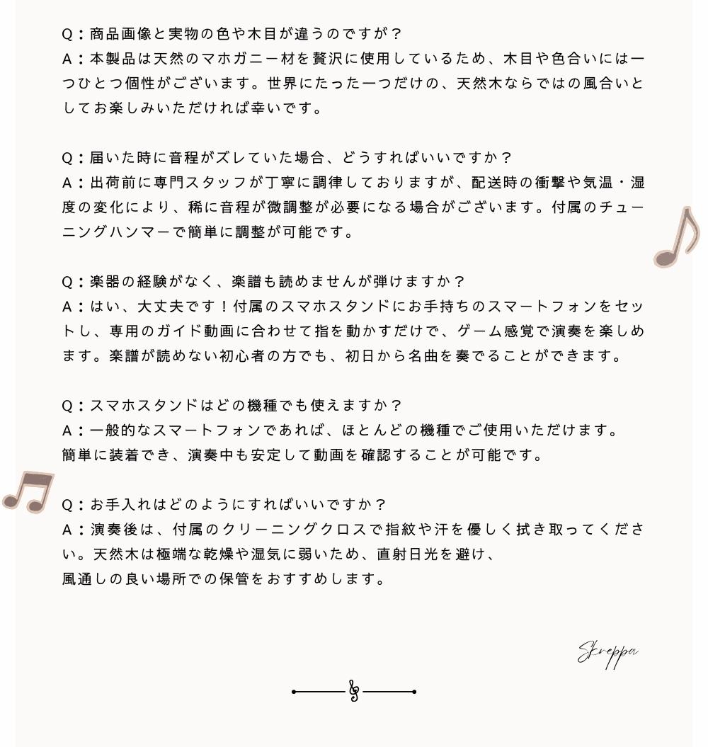 必要なものが全て揃ったセットなので、届いたその瞬間から演奏を楽しめます。パッケージも美しく、自分へのご褒美にはもちろん、誕生日、クリスマス、成人祝いなど、あらゆる記念日のプレゼントとして自信を持っておすすめできる一品です。