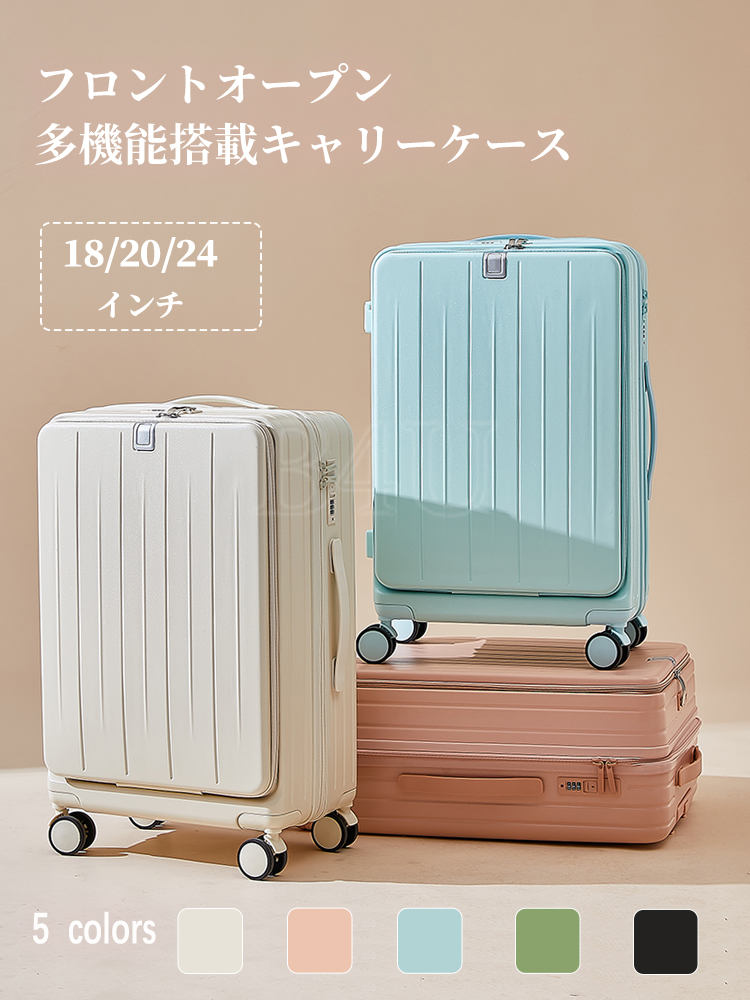 スーツケース 機内持ち込み カップホルダー 前開き トップオープン USBポート フック搭載 キャリーケース 大容量 小型 おしゃれ 人気 ビジネス 旅行 出張 ファスナー式 フロントオープン かわいい トップオープン