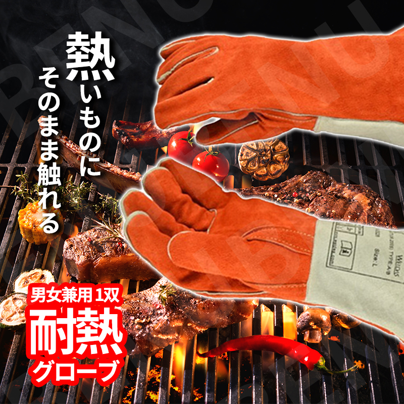耐熱 手袋 耐熱グローブ 防熱 耐火 男女兼用フリーサイズ 2枚セット 1双 アウトドア ソロキャンプ BBQ バーベキュ 焚き火 作業用手袋 本革