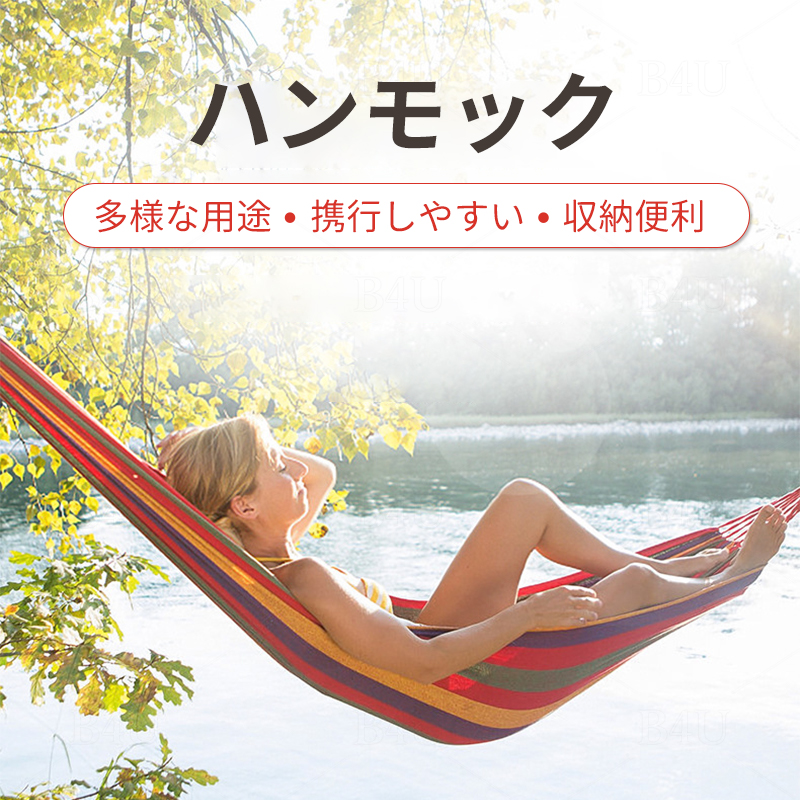 ハンモック 吊るしタイプ 軽量 1-2人用 耐荷重200kg 転倒防止 携行しやすい 収納便利 室内 室外 アウトドア キャンプ 肌触り良い 持ち運び簡単