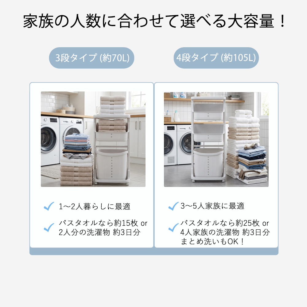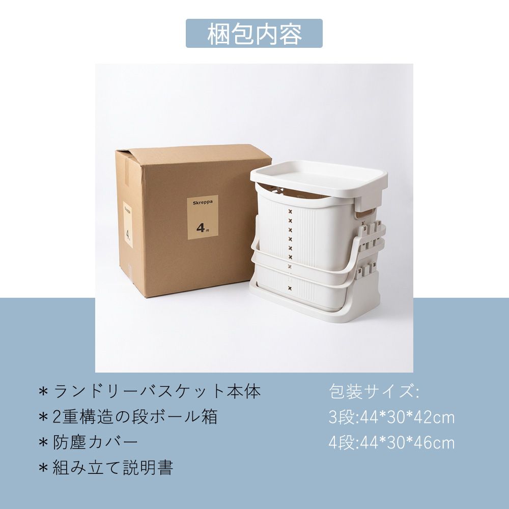 | ●商品仕様 | サイズ:3段:29*43*79cm 4段:29*43*115.5cm 容量:3段:70L 4段:105L 重さ:3段:3kg 4段:3.8kg 生産国:china |