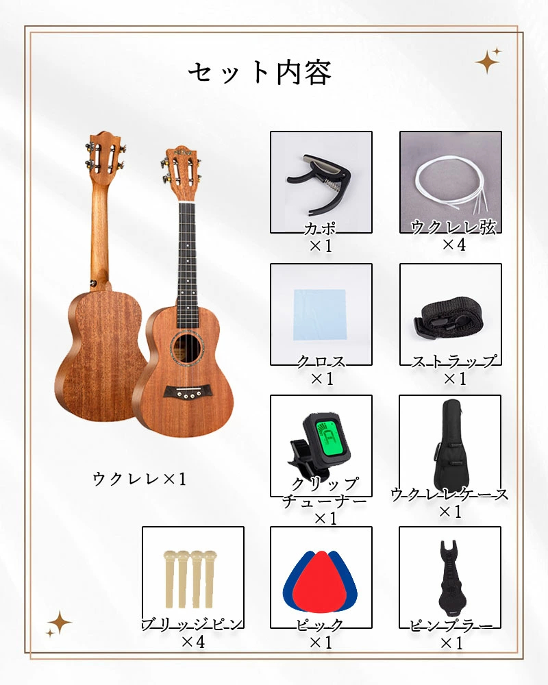 ウクレレ 初心者セット 木製 小型 軽量 ソプラノ コンサート 4弦 大人 子供 ギフト プレゼント おしゃれ