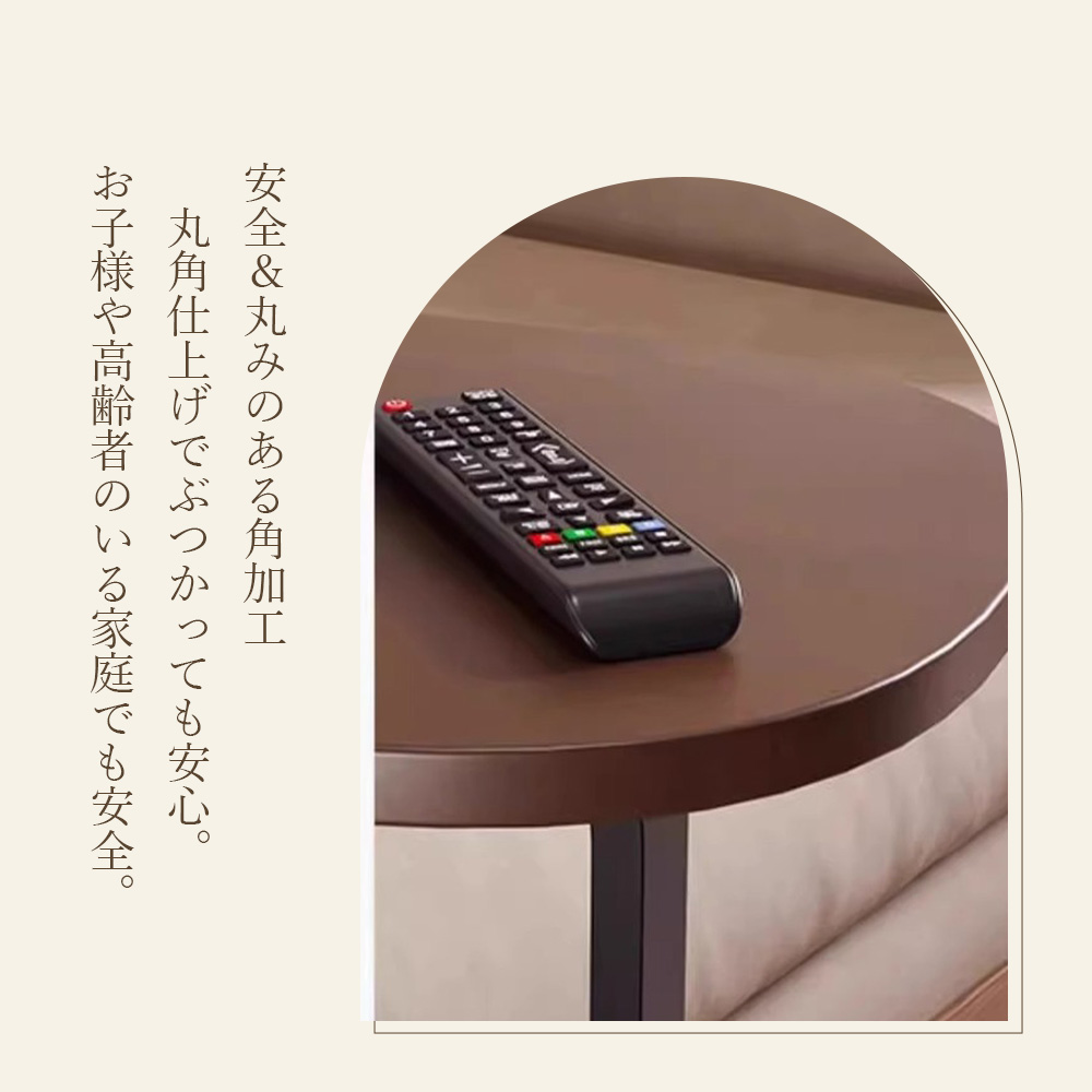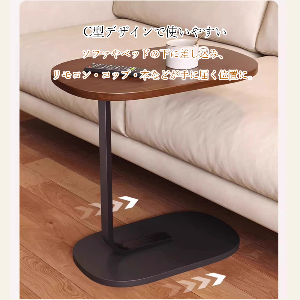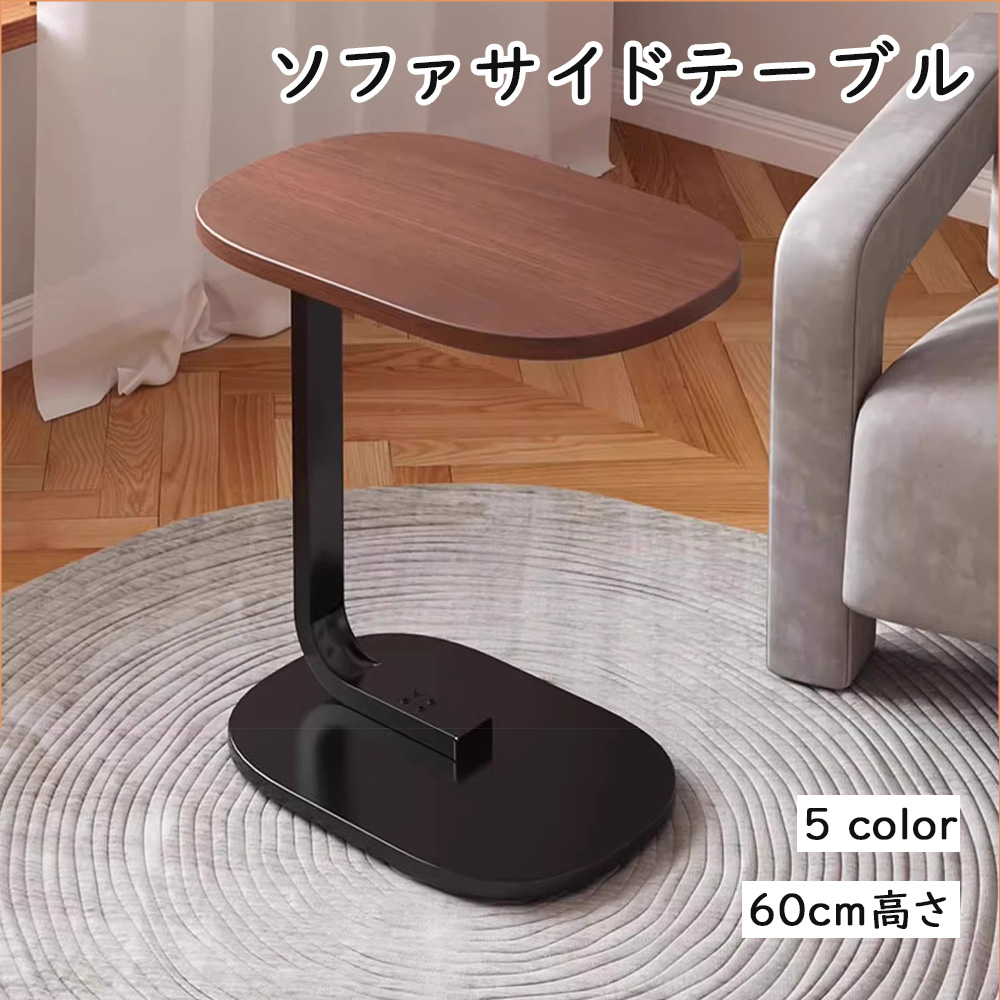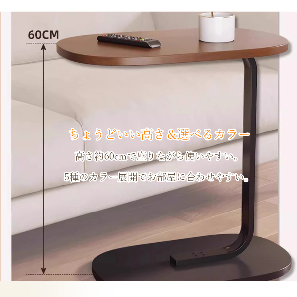 ソファサイドテーブル 60cm高さ 小型ラウンドテーブル 北欧風 ミニテーブル ベッドサイド バルコニー 一人暮らし対応 省スペース C型デザイン 丸角加工 小型家具