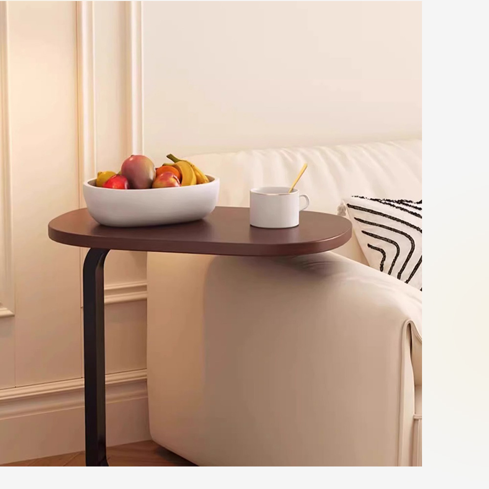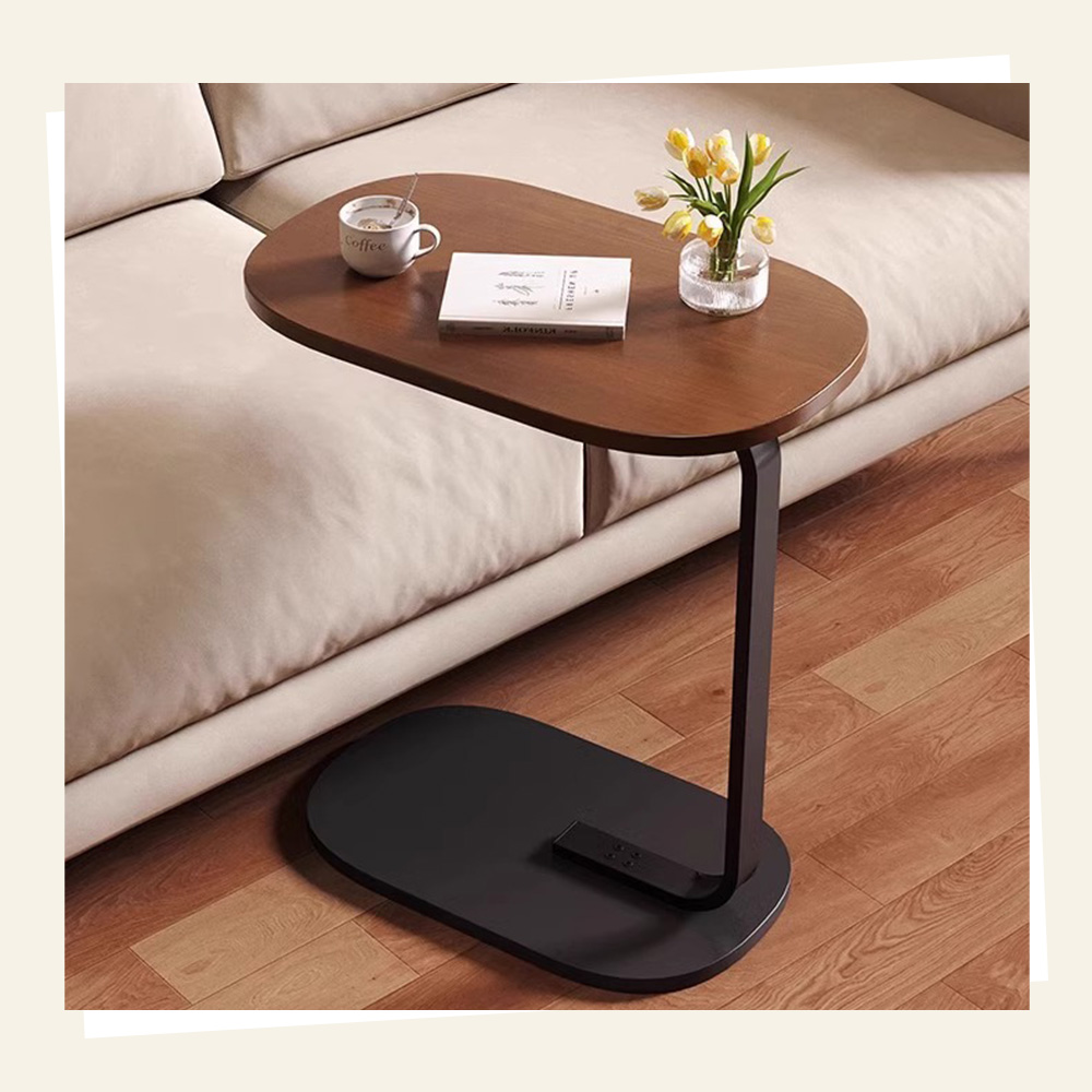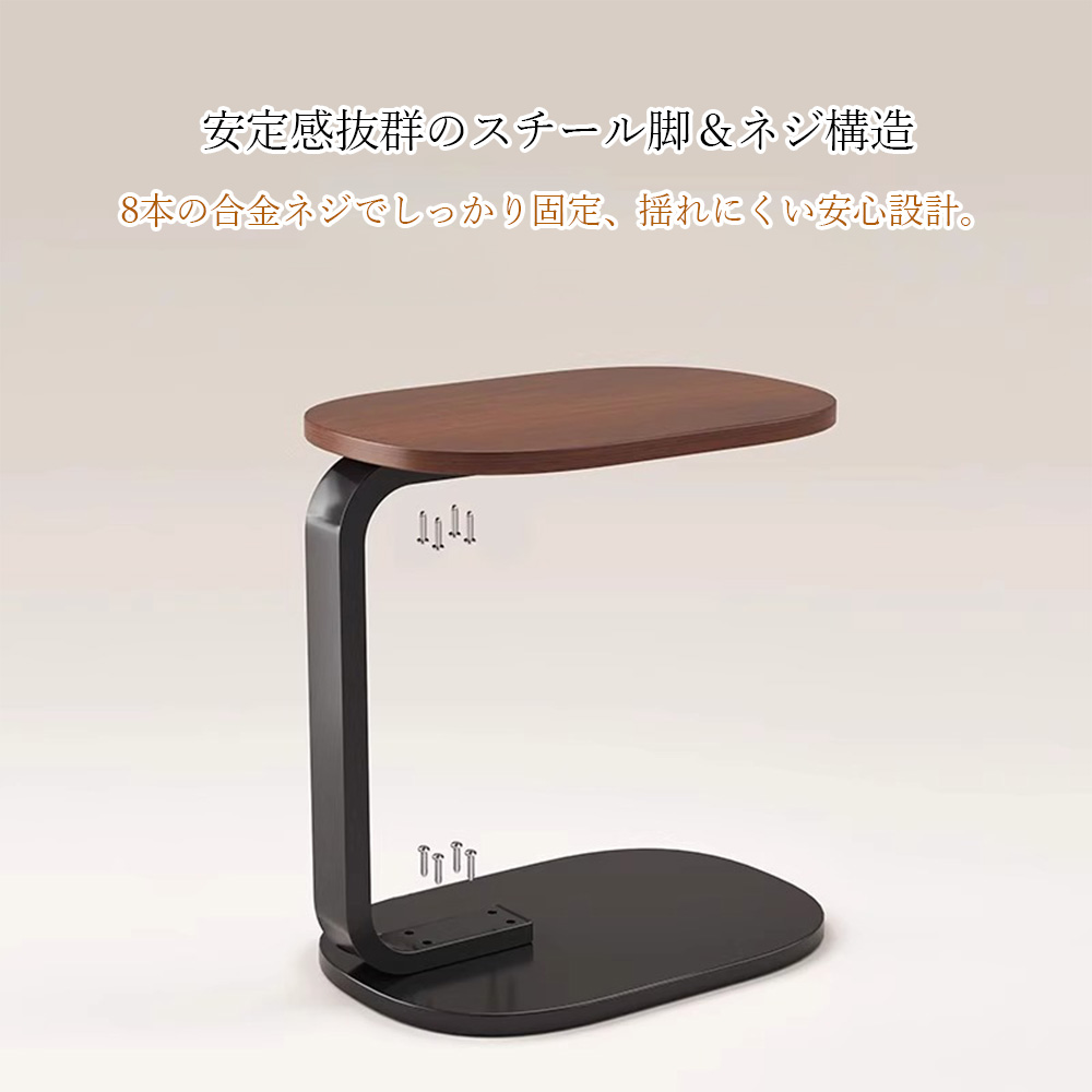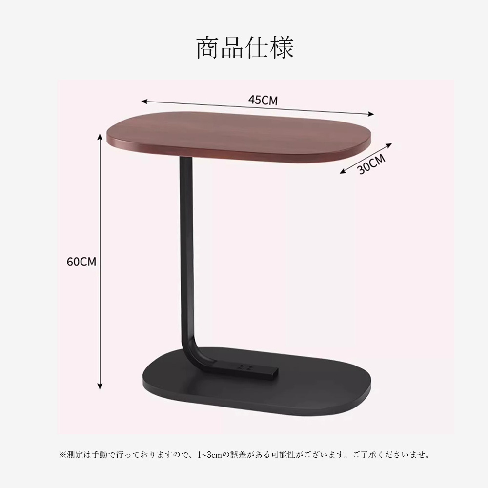 ソファサイドテーブル 60cm高さ 小型ラウンドテーブル 北欧風 ミニテーブル ベッドサイド バルコニー 一人暮らし対応 省スペース C型デザイン 丸角加工 小型家具