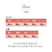 ■上着 ・着丈…53cm ・袖丈…61cm ・肩幅…42cm ・アームホール…50cm ■インナー ・着丈…44cm ・バスト…96cm ・ウエスト…98cm ・肩幅…36cm ・アームホール…46cm |