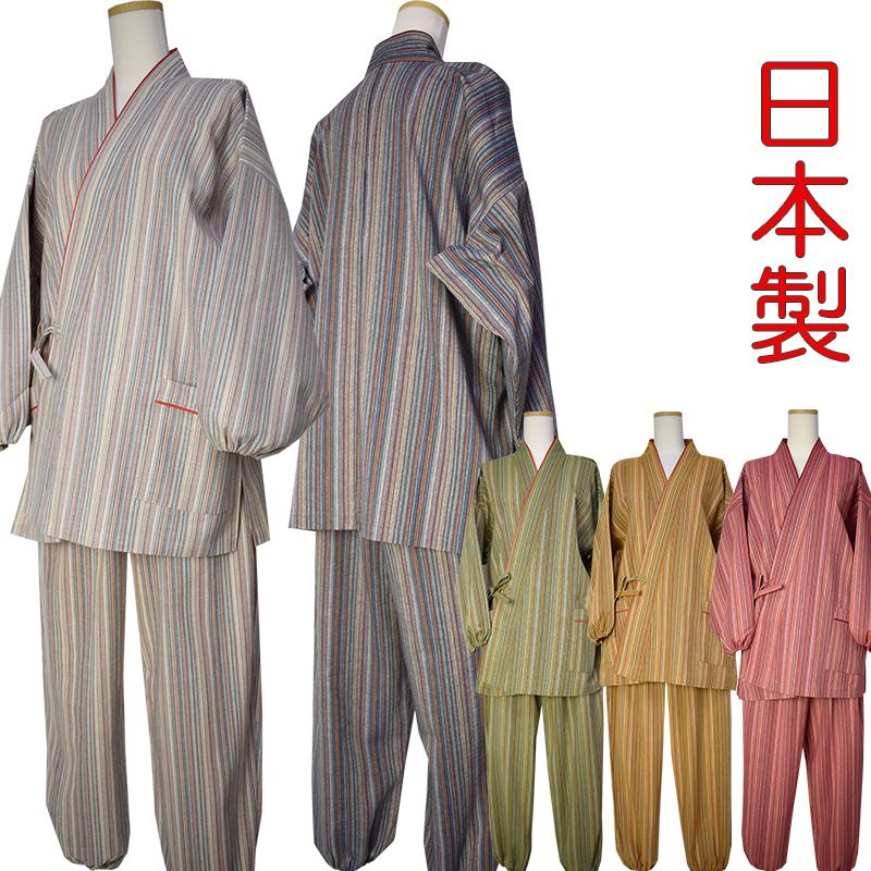 作務衣 しじら レディース コットン かわいい 日本製 マルチストライプ 女性 レディース 綿100