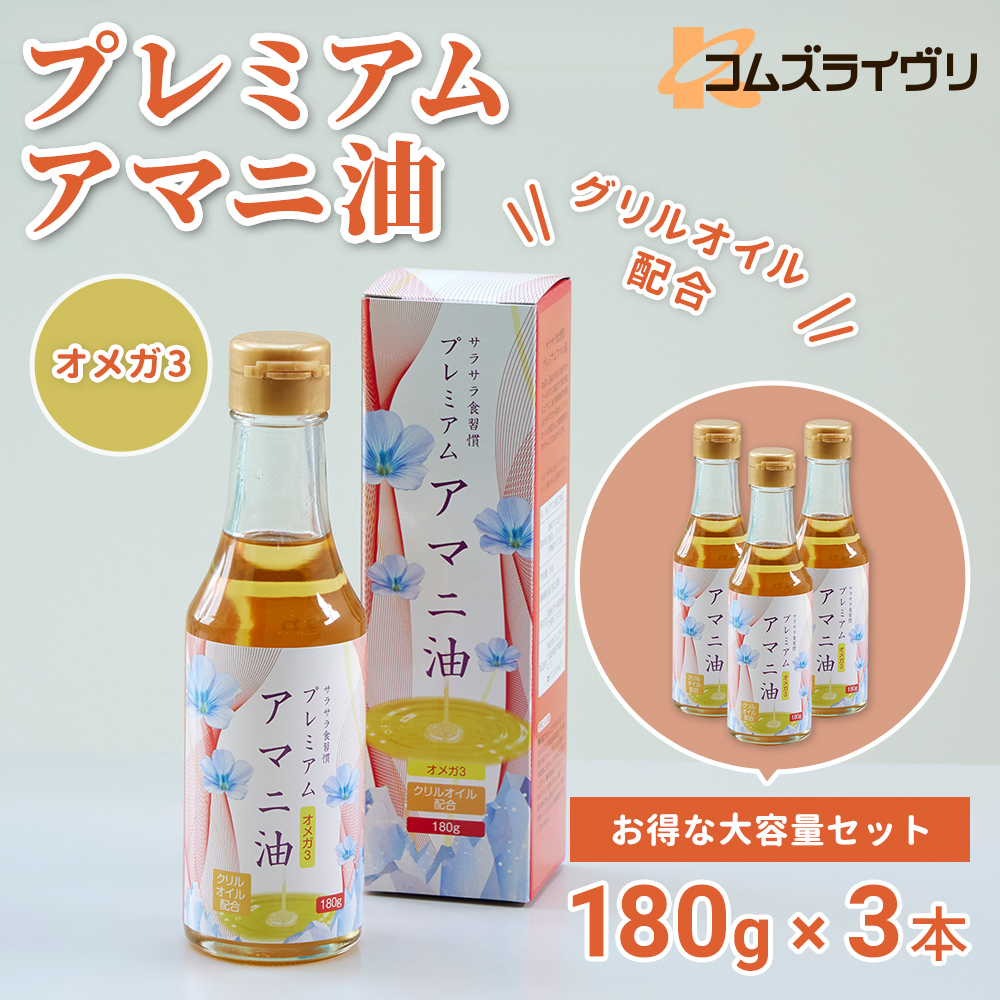 ※オメガ3(α-リノレン酸)は不飽和脂肪酸の一つで熱に弱く酸化しやすい特性を持っています。なるべく冷奴、納豆、サラダやスープなど出来た料理にそのままかけてご使用ください。低温で白濁したりすることがありますが、アマニオイルの成分です。容器をぬるま湯で温めると元に戻ります。