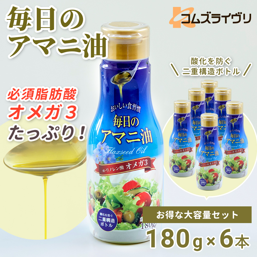 ※オメガ3(α-リノレン酸)は不飽和脂肪酸の一つで熱に弱く酸化しやすい特性を持っています。なるべく冷奴、納豆、サラダやスープなど出来た料理にそのままかけてご使用ください。低温で白濁したりすることがありますが、アマニオイルの成分です。容器をぬるま湯で温めると元に戻ります。