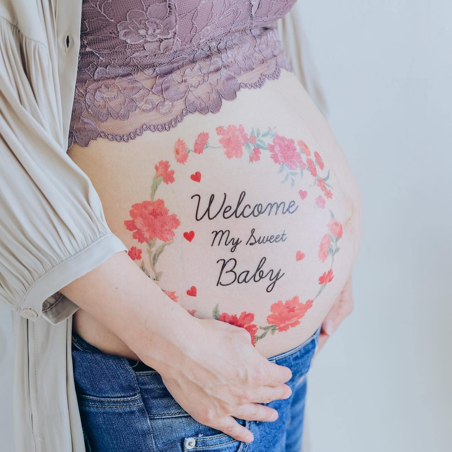 ご自宅で簡単にボディペイントシールを使っておしゃれなマタニティフォトが撮れます。