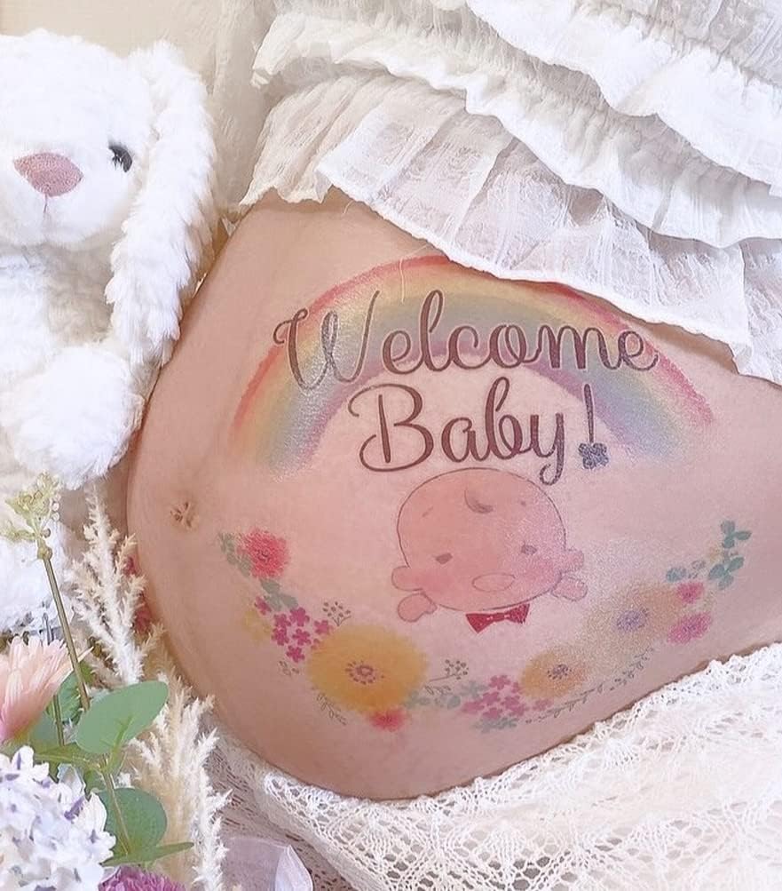 【練習用シール付】 マタニティフォト ベリーペイントシール タトゥーシール 虹 レインボー かわいい プレゼント お腹 セルフ 貼り方説明書付 送料無料 ZK