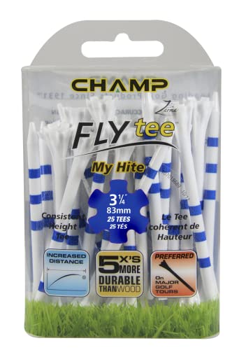 チャンプマイハイトフライティはオリジナルのフライティと同じように6本爪のヘッドとリブデザインにより補強された技術的には同じ特徴を持っています。そしてプレイヤーがボールのセットアップの高さに応じた高さに合わせられるように、シャフト部分に分かりやすい幾つかのカラーラインの特長が加わりました。プレイヤーのボールの高さがいつも同じ高さになるようにセットして、いつも安定したドライブが得られます。プレイヤーに合ったラインを選んでください。この新しいチャンプフライティをお使いになれば、ドライバーショットやアイアンショットで、正しい高さに合わせることに苦労することはもうありません。