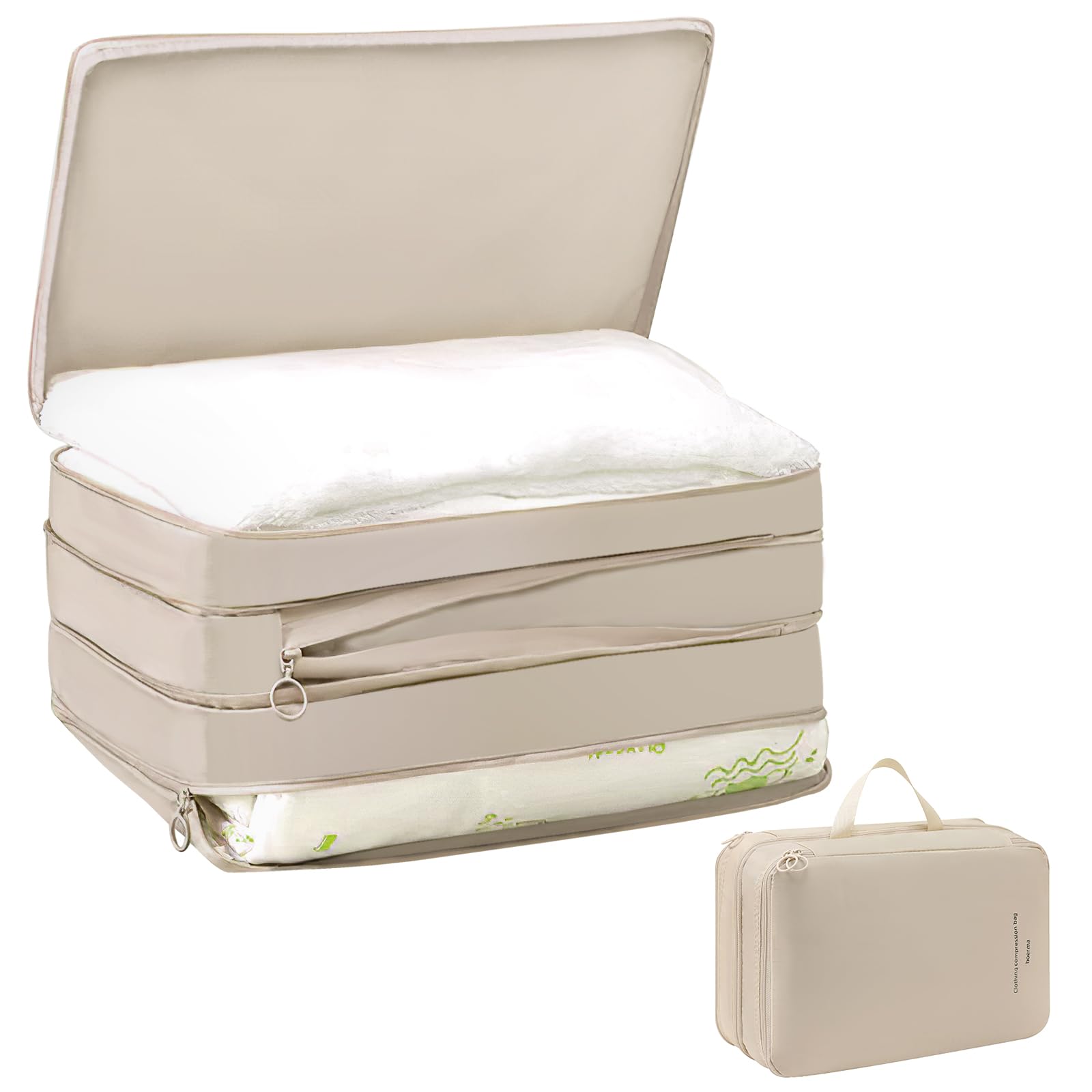 商品名:【最新両面収納】トラベルポーチ 旅行用圧縮袋 スペース節約 可愛い 圧縮袋 出張 旅行 大容量 収納バッグ 衣類圧縮バッグ 衣類仕分け 多機能 簡単圧縮 軽量 便利グッズ ダブルファスナー 圧縮ポーチ (ベージュ, M)