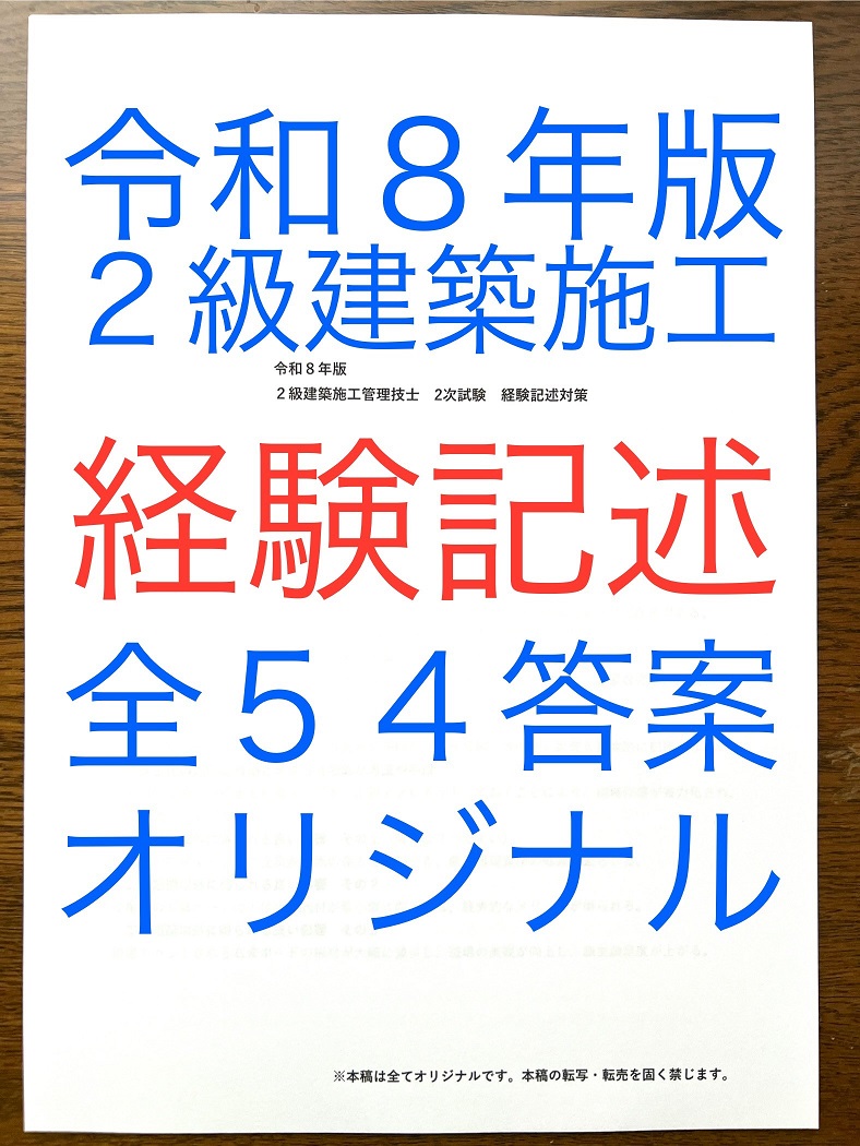 令和8年版 短期学習で合格圏へ 2級建築施工管理技士 経験記述対策 過去問全11年間分計54例文 内装工事外装工事含む 全てオリジナル