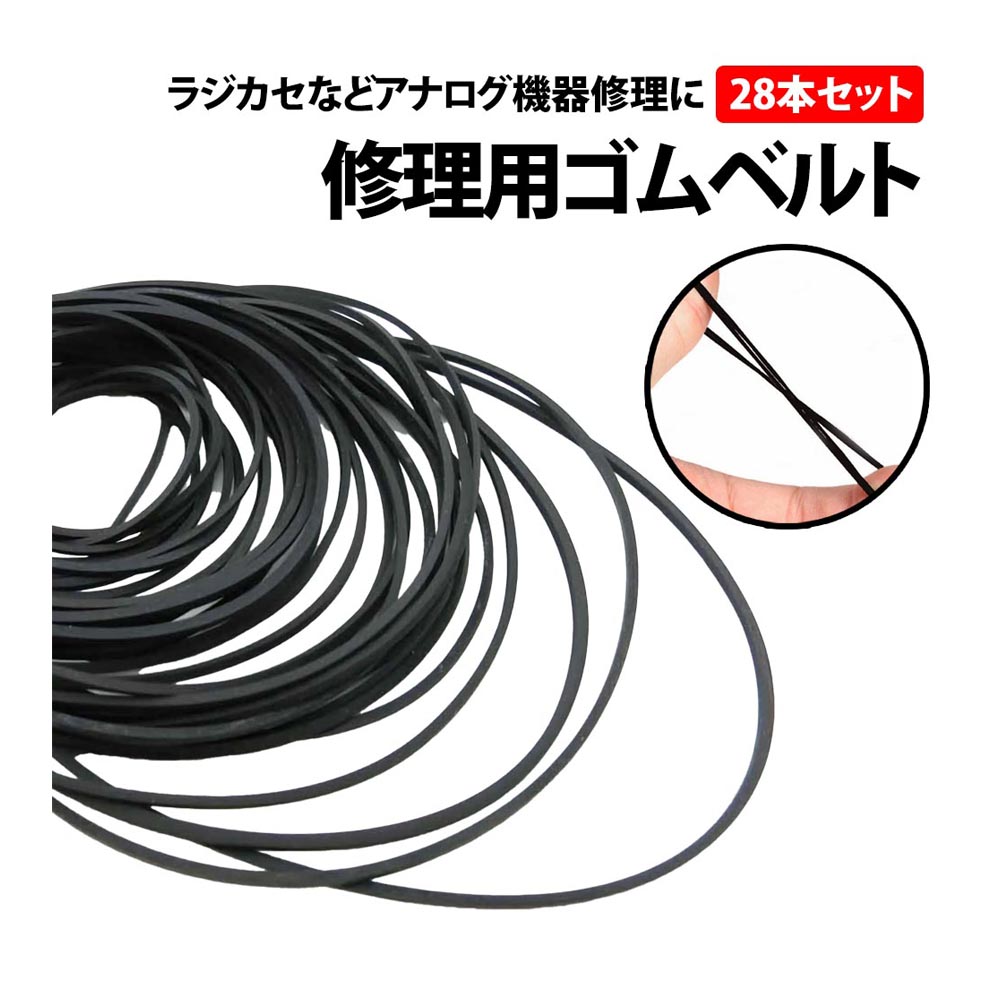修理 交換 ゴムベルト 28本 セット 幅1mm 直径3.5-8cm カセット ラジカセ CD カセットデッキ レコーダー コンポ カセットテープ ビデオデッキ オーディオ 複数サイズ 交換用 修理用 補修 スペア 予備 劣化 ゴム ベルト VHS テレビデオ アナログ機器