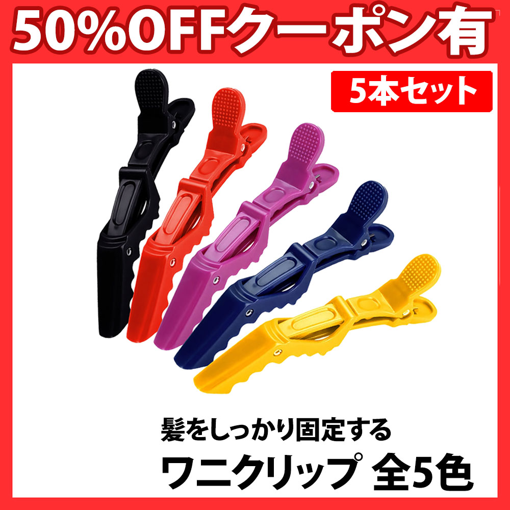ワニクリップ 5本セット ヘアクリップ ドラゴンクリップ ブロッキング 美容室 美容師 ワニ クリップ ダッカール 髪の毛 挟む サロン 特殊歯型構造