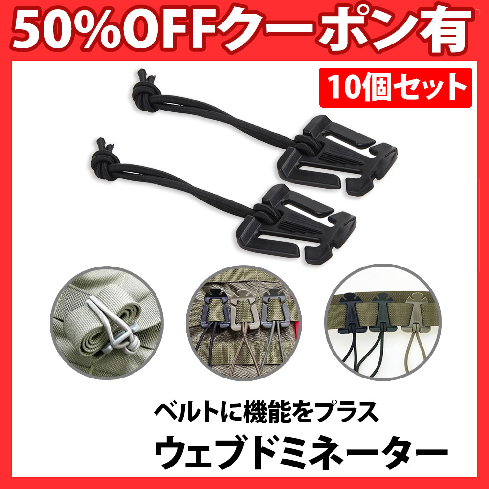 ウェブドミネーター 10個セット サバゲー バッグ リュック アウトドア レジャー ゴム紐 コード 肩紐 肩ベルト まとめ バンジーコード ウェビングベルト