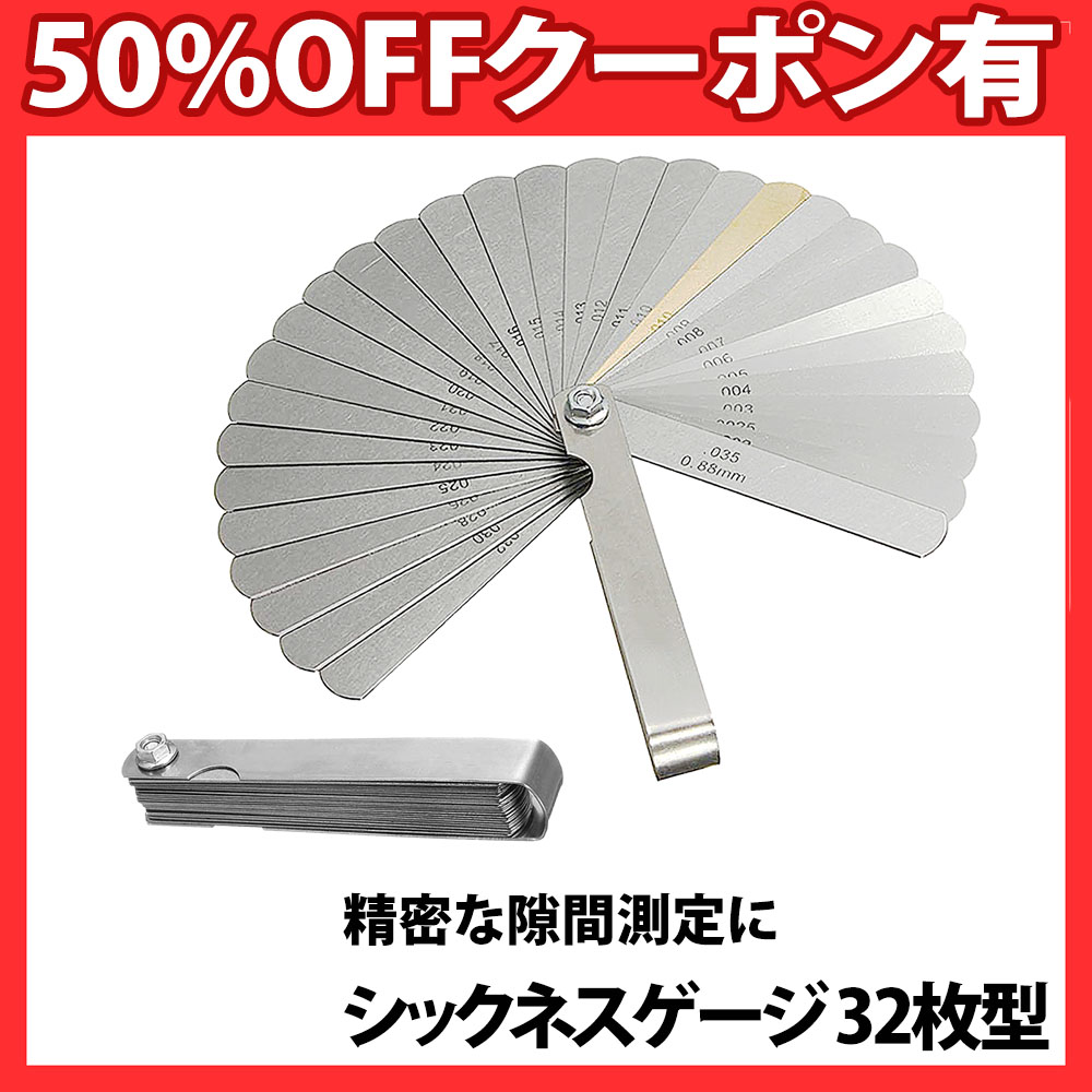 シックネスゲージ 32枚 ステンレス 0.04mm - 0.88mm 32pc 隙間測定 すきま 寸法 シクネスゲージ クリアランス 工具 整備 自動車 バルブ タペット シム