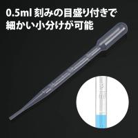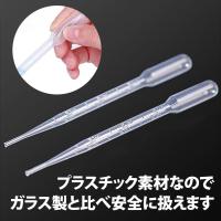 | 【製品情報】 | ・個数:10本セット ・長さ:約 15.5cm (3mlまでの給水部:約 11.4cm) ・重さ:約 1g(※1本あたり) ・素材:プラスチック ・色:クリア ※入荷時期によってクリアの透明度が異なる場合がありますが、仕様となります。 ※本製品は10本セットになります。 | | 【注意 必ずご確認ください】 | ・本製品は液体の小分けや簡易計測・実験などに使用するスポイトとなります。動物の餌やりなど生き物に使用すると、あやまってプラスチック部分をかじって飲み込む恐れがありますのでご注意ください。 ・本体がプラスチック製のため、プラスチックに反応して溶けたり分解する液体には使用出来ません。 ・一度使用したスポイトは必ず洗浄をして保管をしてください。洗浄せずにそのままにすると、前に使用した液体の成分が残ったり、色素が沈着する場合があります。 ・破損して液漏れなどが発生した場合は破棄をしてください。無理に使用すると使用中に手にかかり、溶液によっては怪我やかぶれなどに繋がる恐れがあります。 ・製造・入荷時期によっては一部デザインや形状が変わる事がありますが、商品説明にあります基本性能は同様の物となり仕様となります。 | |