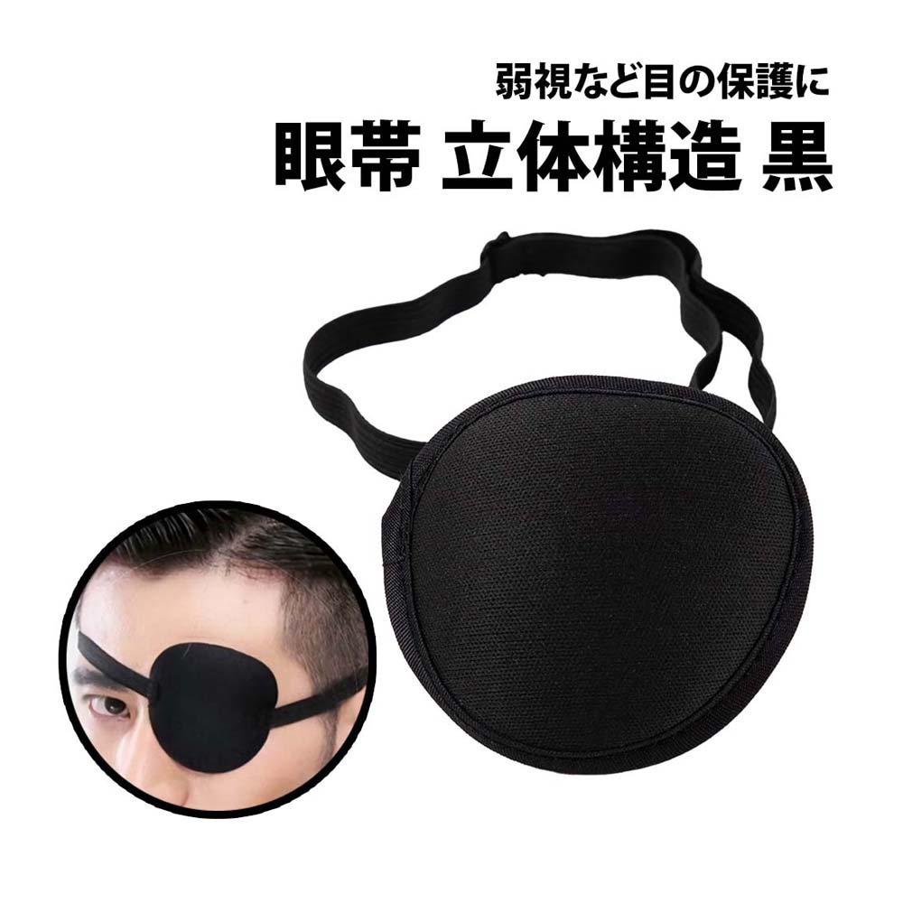 眼帯 立体構造 片目 1個 遮光 黒眼帯 単眼 立体 柔らか ゴムバンド フリーサイズ サイズ調整 ファッション コスプレ 仮装 衣装 小道具 小物黒 ブラック 子供 ゴムベルト 伸縮 大人 子供 両目兼用 左右兼用 アイケア 弱視 保護 視力 左目 右目 カバー