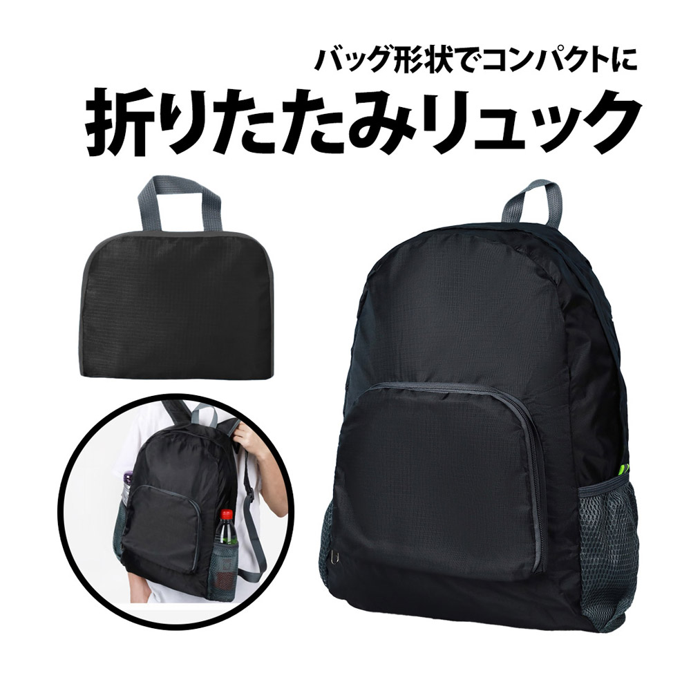 折りたたみリュック バッグ形状 ブラック 携帯リュック 折り畳みリュック 大容量 リュックサック 収納 コンパクト ポリエステル 防水 サブバッグ トラベル バックパック 旅行 アウトドア 防災 避難 通勤 通学 男女兼用 メンズ レディース ハイキング