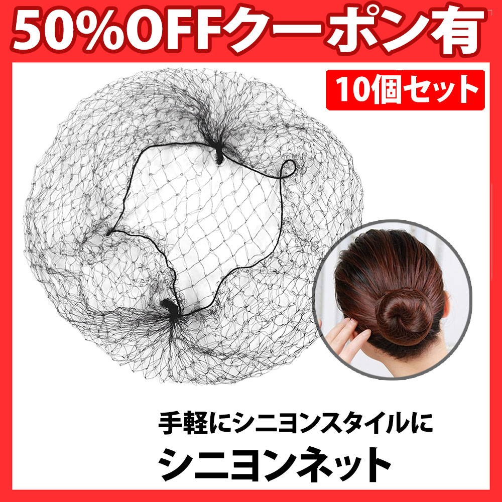 シニヨンネット 10個セット 黒 髪長さ50cm 極細 髪束ね ヘアネット アシアナネット お団子 バレエ CA 看護師 就活 ロングヘア シニヨン 新体操 発表会 子供
