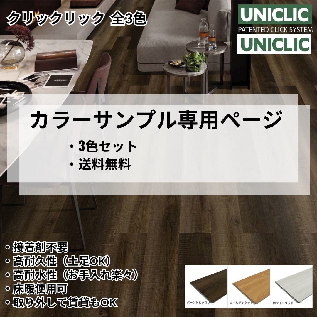 【カラーサンプル専用ページ】 クリックリック SPCフローリング 3色セット|木目 賃貸 床暖房対応 フロアタイル はめ込み式 ホームステージング