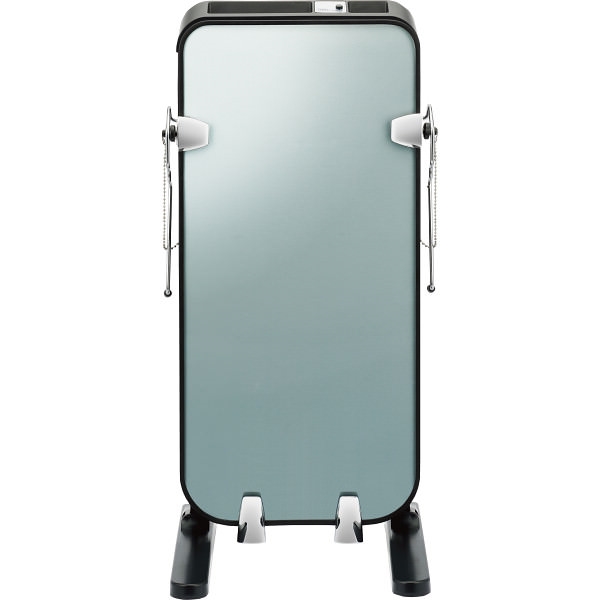 ●プレス状態が見えるガラスパネルで、二重線、ヨレ予防。楽々プレスできるレバー式。消臭シート付。ガラス&メッキ仕上げの高級感があるデザイン。部屋に置いても圧迫感の少ない省スペース設計。ポケット内の小物が置ける収納スペース付。