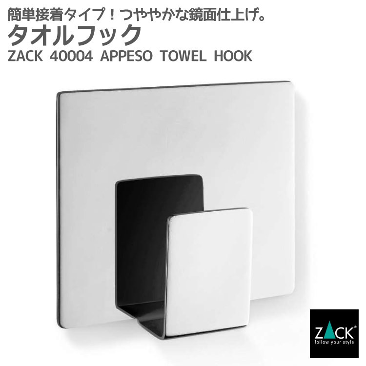 タオルフック 角 シールフック タオルホルダー フック 接着シール シール 簡単 接着 水回り 浴室 洗面 キッチン 便利 ドイツ ステンレス ZACK 40004 APPESO MP