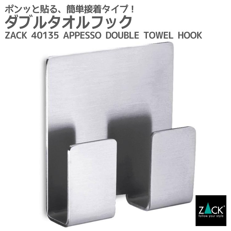 タオルフック ダブルフック 角 ダブル 2連 シールフック フック シール 簡単 接着 水回り 浴室 洗面 キッチン 便利 ドイツ ステンレス ZACK 40135 APPESO HL