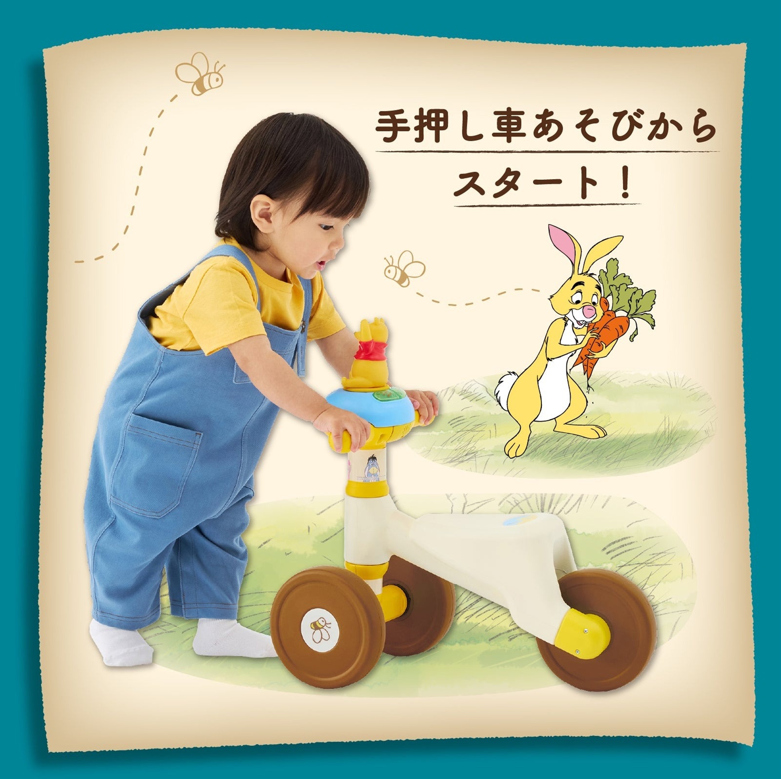 押して、乗って、あそんで、自然と成長していくステップを、ディズニーの仲間たちと一緒に。